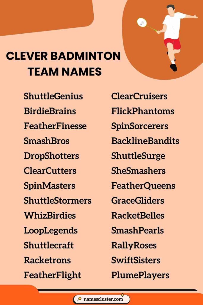 Do you want to know how to select amazing names for your team? Then you are in the right place. Name clusters provide you with an extensive list of catchy, original, and creative badminton team names.